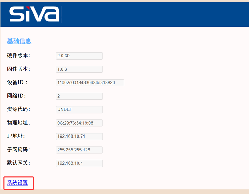 网络音频播放器主页显示了设备的基础信息,点击“系统设置”可以对设备的配置进行设定