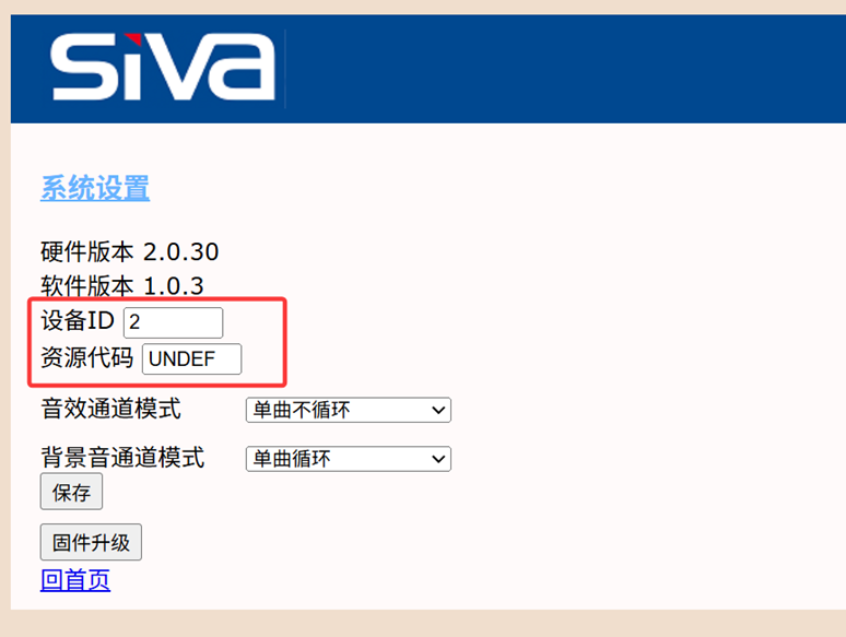 网络音频播放器能够通过设备自身的配置页面,进行相关基础参数的设置。基础参数包括用于识别的设备ID和资源代码。