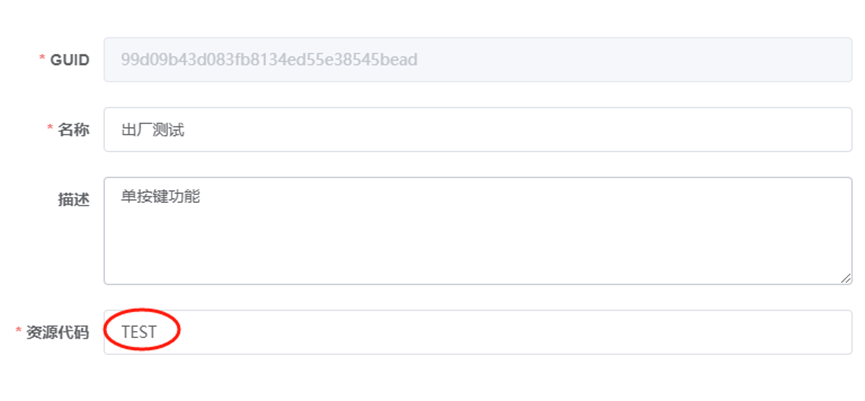 设备ID:在主题中分配的ID号,不能与主题中其他的网络设备ID重复。 资源代码:主题的资源代码,出厂默认未UNDEF。资源代码应该与主题编辑中填写的资源代码一致。下图为资源代码示例(并非所有主题资源代码都是TEST)。