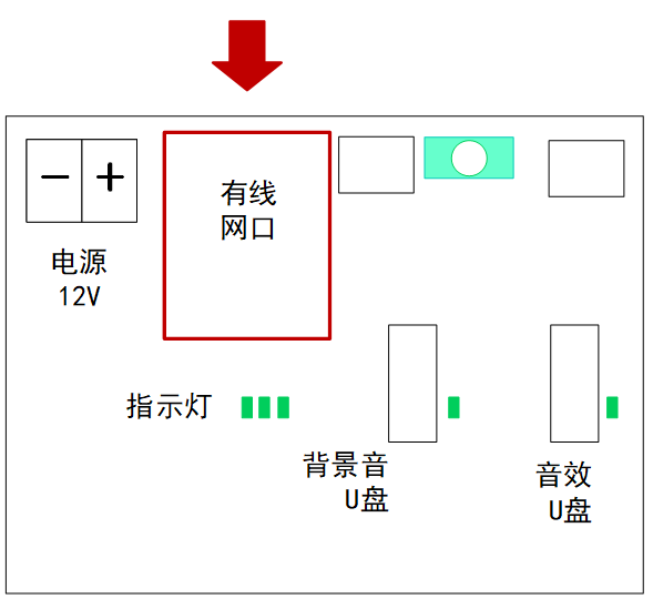 请将网线接入有线网络接口 注意:网络音频播放器应该和主题接入同一个局域网内