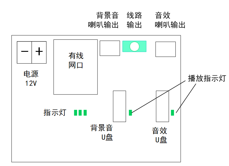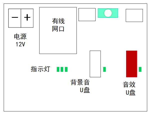 网络音频播放器实现通过局域网连接,播放音效和背景音的功能。播放器提供2个播放通道,每个播放通道的模式都可以独立配置(单曲不循环、单曲循环)。播放器还提供板载的大功率功放,电子音量调节。能直接推动外接的音箱或喇叭,实现局部音效功能,省去了采购功放的成本。