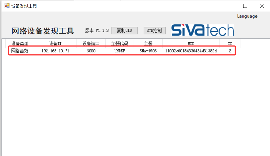 将网络音频播放器连接好电源和网线后,可以在PC端通过网络设备发现工具,查看到该控制器的IP地址。双击表格中的设备后可以进入设备配置页面的主页: