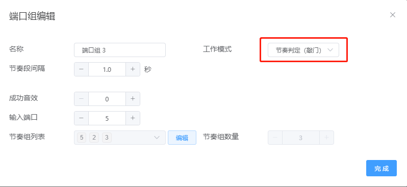端口组类型中,选择端口组设备的工作模式为 节奏判定(敲门)